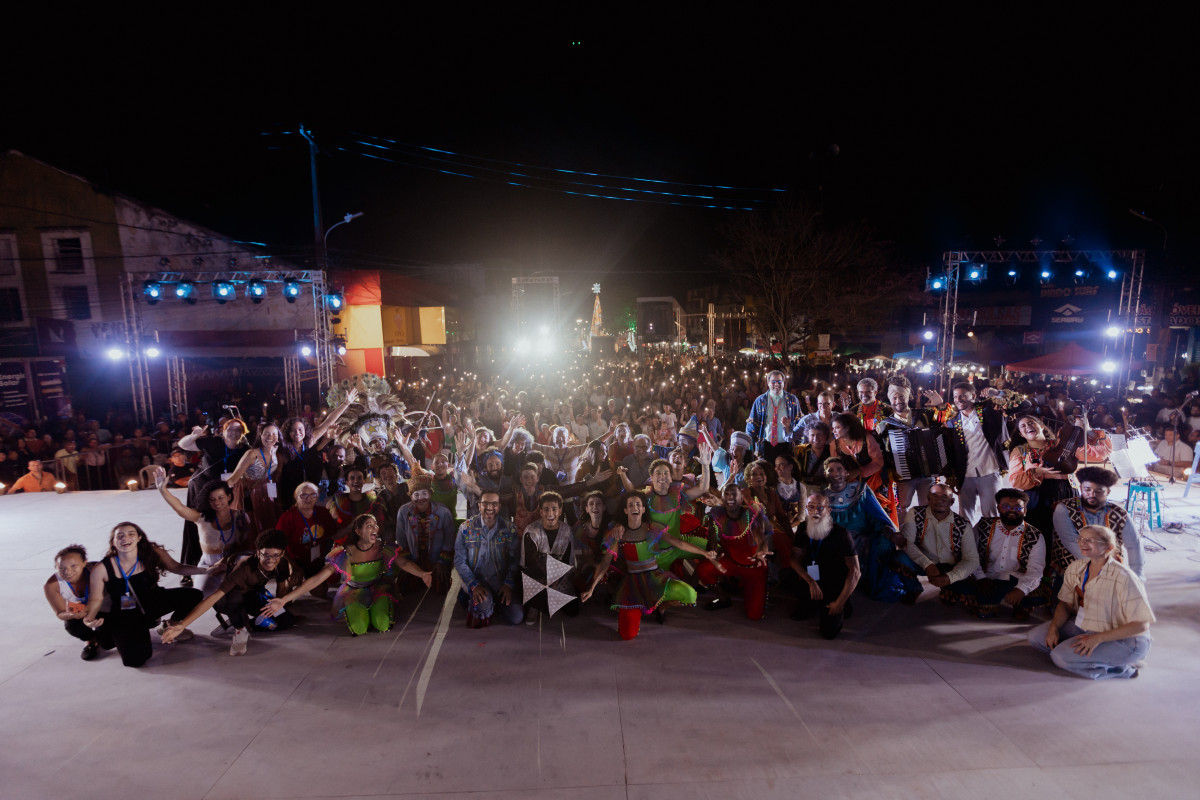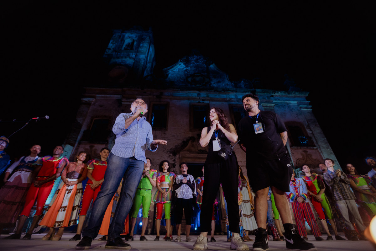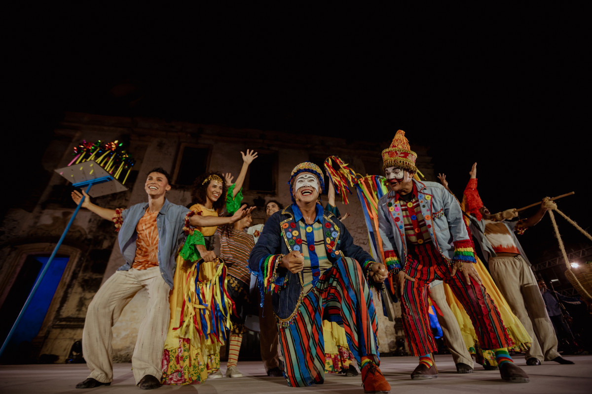 A Praça da Misericórdia, em Goiana, ficou lotada neste sábado (6) para a estreia do “Baile do Menino Deus” na Zona da Mata Norte. Esta é a primeira vez que o espetáculo, considerado o maior auto de Natal do país inspirado na cultura brasileira, é encenado fora do Recife sob direção de Ronaldo Correia de Brito. No Marco Zero, a montagem segue confirmada para os dias 23, 24 e 25 de dezembro, às 20h, além de um cortejo gratuito no dia 14 pelo Recife Antigo, às 15h30.